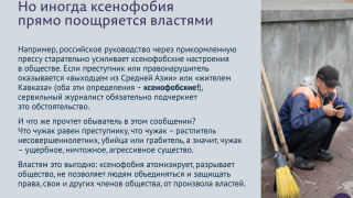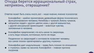 Вся деятельность тиранической российской власти построено на внушении гражданам страха и отвращения к чужакам, которые исповедуют неправильные ценности и потому должны быть наказаны. В новом выпуске нашего психологического сериала мы говорим о первобытном, животном в человеке – о ксенофобии.