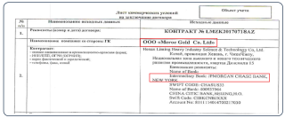 Как свидетельствуют оказавшиеся у C4ADS документы, в августе 2017 г. «Вагнер» использовал суданскую компанию Meroe Gold для закупки горнодобывающего оборудования у китайской Henan Liming. Платеж за него на $688 460 был отправлен из Blue Nile Mashreg Bank (один из крупнейших банков Судана), в JPMorgan Chase в Нью-Йорке, а оттуда — в China CITIC Bank в Гонконге.