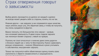 Одиноким, пережившим предательство, чужакам — как им вернуть равновесие в жизни? В новом выпуске психологического сериала — о том, стоит ли полагаться на мнение окружающих и как сохранить правильную самооценку.