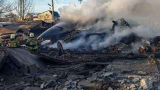 В Киеве обломки ракет упали в трех районах. В Печерском районе вспыхнул пожар на крыше пятиэтажного дома, ранения получили два человека, сообщил мэр столицы Виталий Кличко. В Николаеве жертвами обстрела стали две женщины, еще шесть человек получили ранения, среди них двое детей, написал в своем телеграм-канале глава областной администрации Виталий Ким.