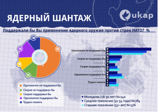 Несмотря на всю антизападную и особенно антинатовскую риторику пропаганды, большинство граждан РФ (65%) не поддержали бы ядерные удары и по странам НАТО. Но каждый четвертый респондент поддержал бы такой шаг.