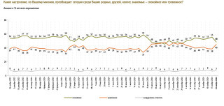 По состоянию на 24 ноября 45% граждан говорили, что среди их родных, друзей, коллег и знакомых преобладают «тревожные настроения». За неделю доля таких ответов выросла на 7 процентных пунктов, что стало сильнейшим скачком с теракта в «Крокус сити холле» — тогда доля тревожно настроенных респондентов выросла на 8 п. п.