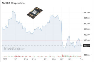 История с DeepSeek должна была бы весьма насторожить фондовых спекулянтов, с одной стороны, и инвесторов в бигтех – с другой. История простая: китайская большая языковая модель оказалась не хуже американских, хотя инвестиций в нее было на порядок меньше, а оборудование, вычислительные мощности, существенно слабей. Как вы увидите на графике ниже, самая дорогая в мире компания, которая эти мощности производит, Nvidia, полетела в пропасть, потеряв почти 600 млрд долларов капитализации. Инвесторы напугались: зачем давать столько денег, если китайцы делают вон как дешево. Зачем нужна Nvidia, если и на простых чипах искусственный интеллект хорошо работает.