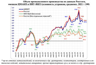 С начала 2025-го российский индекс промышленного производства (с исключением сезонности) ежемесячно снижается. Под давлением сверхвысокой ставки гражданские сектора уменьшают производство товаров и услуг. А военные сектора, кредитуемые по спецсхемам, выпуска не снижают.