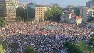 В субботу в Белграде прошла масштабная акция протеста, участники которой потребовали отставки правительства и досрочных парламентских выборов. 28 июня отмечается Видов день — главный национальный праздник Сербии, в столицу съехались люди со всей страны. МВД оценило количество протестующих в 36 тысяч. По данным независимой наблюдательной организации «Архив публичных собраний», в акции приняли участие 140 тысяч граждан, передает Associated Press. Площадь Славия в центре города, рядом с которой расположены многие правительственные здания, была полностью заполнена.