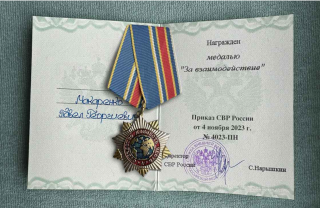 За 20 дней до открытия храма Макаренко был награжден медалью СВР «За взаимодействие», приказ подписан директором службы Сергеем Нарышкиным. Фотография с медалью размещена в сообщении Всемирного русского народного собора, главой которого является Патриарх Московский и всея Руси Кирилл.