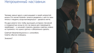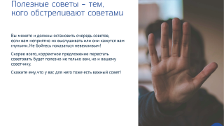 Людям очень важно чувствовать свою нужность – особенно когда в их жизни наступает неопределенность. Но это не повод, чтобы навязывать свои рекомендации друзьям и знакомым, которые тоже попали в сложные обстоятельства. Что делать с непрошеными советами? – об этом в новом выпуске нашего психологического сериала.