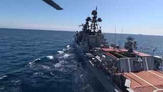 Также боевая авиация провела маневры по поиску и уничтожению цели, имитировавшей вражескую подлодку. Для этого были задействованы противолодочные самолеты Y-8, прибывшие с аэродрома базирования на территории Китая, несколько Ил-38 морской авиации ТОФ и палубные вертолеты. «В результате эффективных совместных действий подводная лодка „противника“ была оперативно обнаружена и условно уничтожена», — прокомментировали в МО.