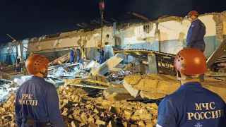 Позднее из-под завалов вытащили еще два тела и одного раненого, который скончался по пути в больницу. Поисково-спасательные работы продолжаются. По данным ведомства, разобрана половина разрушенных конструкций на площади 3000 м². Кинологи обследовали 100% помещений в поисках живых людей.
