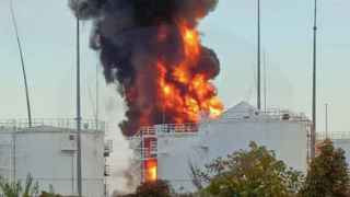В поселке Гвардейское, расположенном в аннексированном Крыму, уже четвертые сутки продолжается пожар на нефтебазе. В понедельник днем над объектом наблюдался небольшой дым, а горящий резервуар поливали водой из трех пожарных машин, однако уже 21 октября огонь вспыхнул с новой силой, пишет мониторинговый канал «Крымский ветер». В небо поднялся столб черного дыма, который видно даже из отдаленных населенных пунктов.