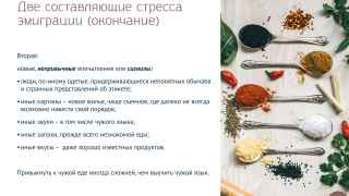 Предновогодний выпуск нашего психологического сериала посвящен хлопотам вокруг приготовления еды. Для эмигранта это не просто приятное и необходимое занятие, но и способ справиться со стрессом эмиграции.