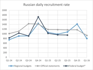 В конце 2025 года ряд субъектов РФ снизили бонусы за подписание контракта на фоне дефицитов местных бюджетов, которые суммарно по стране достигли рекордных 1,5 трлн рублей. Однако в начале 2026-го выплаты снова начали расти: их среднее значение по 47 субъектам достигло 1,45 млн рублей, а медианное — 1,55 млн. А это может означать, что набор идет «не по плану» и спущенные из Москвы, возможно, квоты не выполняются, отмечает Клюге.