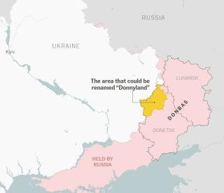 Поначалу украинский переговорщик упомянул такое название, в котором совмещены «Донбасс» и «Дональд», в шутку. Тем не менее, оно вошло в оборот на переговорах, хотя, насколько известно, не попало ни в один документ. Это был один из способов, с помощью которого украинцы пытались склонить Дональда Трампа на свою сторону, пишет NYT; а то, что напоминающее «Диснейленд» название было применено к обезлюдевшему, разоренному региону, «отражает глобальную реальность, в которой правительства апеллируют к тщеславию Трампа, чтобы заручиться его поддержкой».