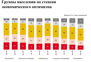 В результате доли оптимистов и склонных к оптимизму респондентов оказалась минимальной с марта 2022 г., а пессимистов и склонных к пессимизму – максимальной.
