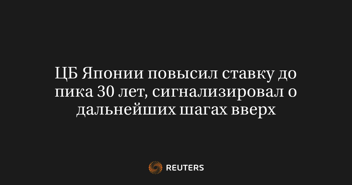 ЦБ Японии повысил ставку до пика 30 лет, сигнализировал о дальнейших шагах вверх