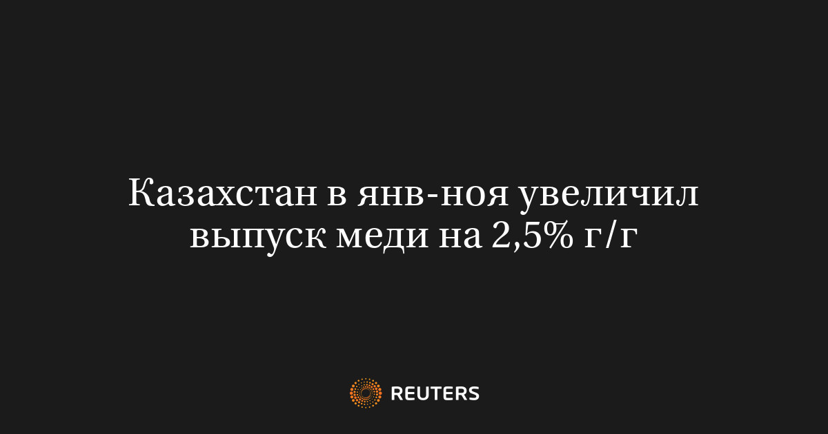 Казахстан в янв-ноя увеличил выпуск меди на 2,5% г/г